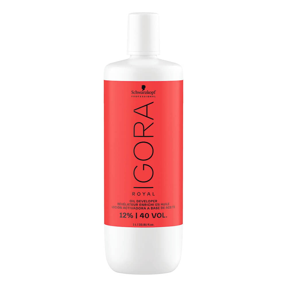 Schwarzkopf Professional IGORA ROYAL Oil Developer is a high-performance peroxide designed for vibrant, long-lasting colour with exceptional shine. Featuring a Lipid Carrier System and nourishing oils, it ensures rapid pigment penetration and even colour from root to tip, sealing the cuticle for enhanced lustre and care. Available in four strengths: 3% (10 Vol) for dark or pastel colouring and toning; 6% (20 Vol) for tone-on-tone and 1–2 level lift; 9% (30 Vol) for 2–3 level lift; and 12% (40 Vol) for up to 5 level lift with Fashion Lights. Optimized for IGORA ROYAL Permanent Hair Color and IGORA Vario Blond Plus, its creamy 1:1 or 1:2 mix offers precise application. Available in 60ml and 1-litre bottles.