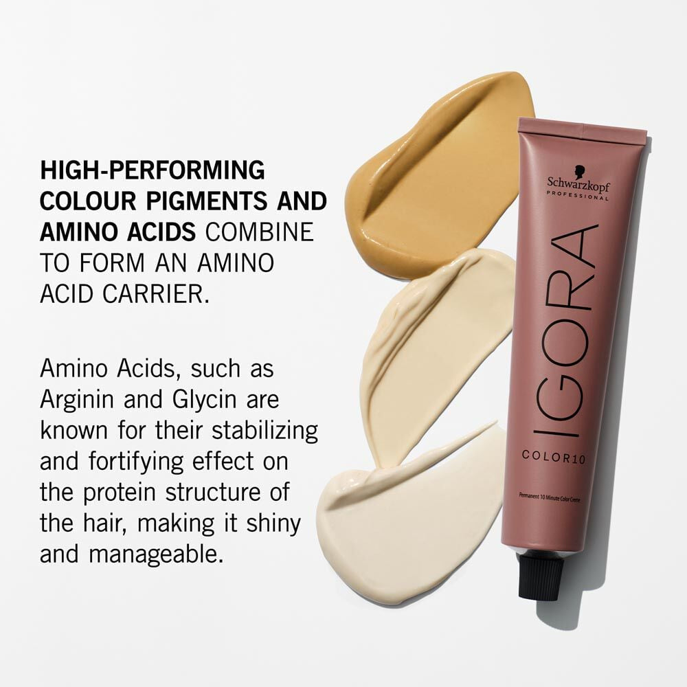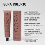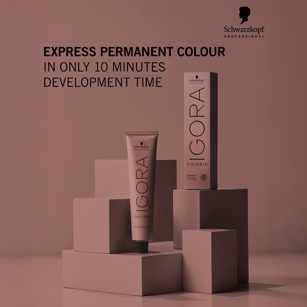 Schwarzkopf Professional Igora Royal Color10 offers a high-speed permanent hair colour service, delivering vibrant results and up to 100% coverage in just 10 minutes. Ideal for quick root touch-ups, short hair, or partial colour techniques, its creamy 1:1 mix with Igora Royal Oil Developer ensures fast, precise application. With a range of intermixable shades, Color10 guarantees stunning, reliable colour with lasting shine, perfect for busy clients and colourists.
